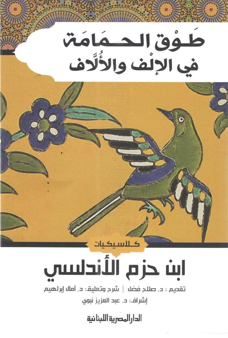 تحمل كلمة «الحُب» ما تحمل من أسرار، وتجلب ما تجلب من أفراح وأتراح، فما أن يُصاب الإنسان بالحب، إلا وتتغير حاله، وتتبدل شئونه؛ فالحب يفعل ما يفعل في الإنسان لما له من أسرار وأعراض، والإمام «أبو محمد ابن حزم» في رائعته «طوق الحمامة» يغوص في بحار هذا السر الذي خُلِق مع الإنسان، فيُخرِج لنا أصوله، ويُعرفنا على أعراضه ونواحيه، وصفاته المحمودة والمذمومة، وكذلك الآفات التي تدخل على الحب وتلازمه، مُورِدًا بين ثنايا كتابه بعض القصص التي عاينها بنفسه عن الحب وأبطاله، ثم يختم رسالته الغنية هذه بأفضل ختام؛ وهو: قبح المعصية، وفضل التعفف؛ ليكون قد أحاط بالحب من كل جوانبه.